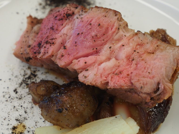 皿には皮付きで焼いた、あまみを増したカットタマネギが添えられていた。