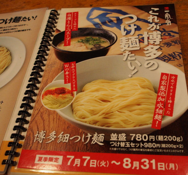 「博多細つけ麺」を求めて、博多一風堂@山王店(福岡市・博多区)さんを再訪。