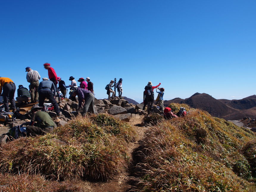 大きな木々が消え、なだらかな草尾根を登って山頂へ。