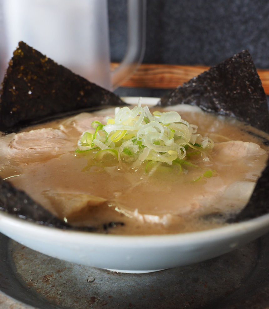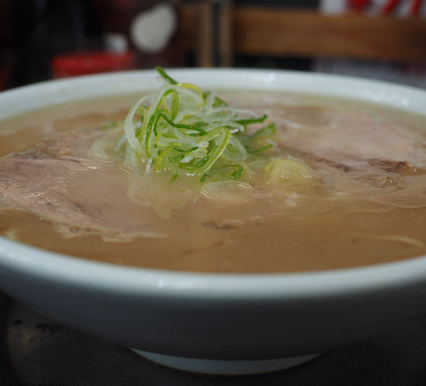 大量の豚ゲンコツが炊かれ、豚骨出汁がきっちり利いた味わい。