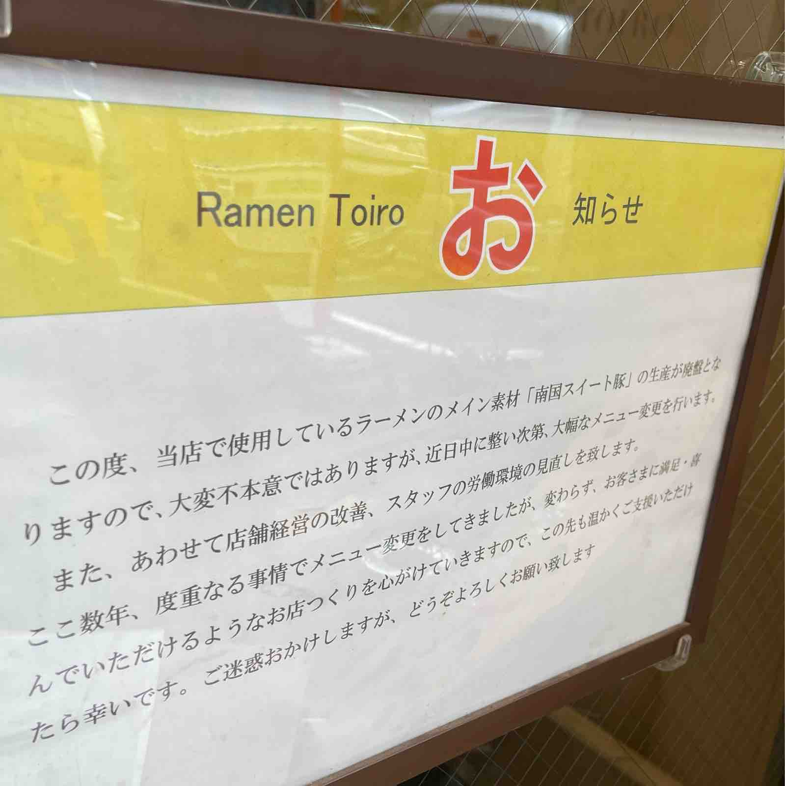 現状のとんこつラーメンは近日中に大幅なメニュー変更を